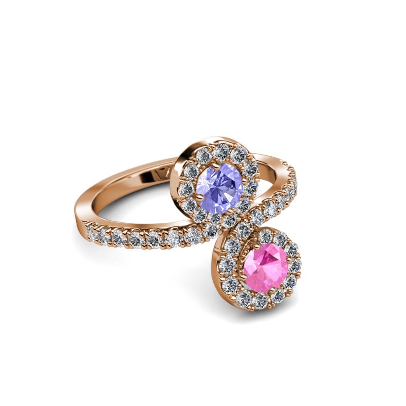 Pink Sapphire and Tanzanite 2 Stone with Side Diamonds Womens Bypass Engagement Ring 1.20 ctw 14K Rose Gold More Details ...
