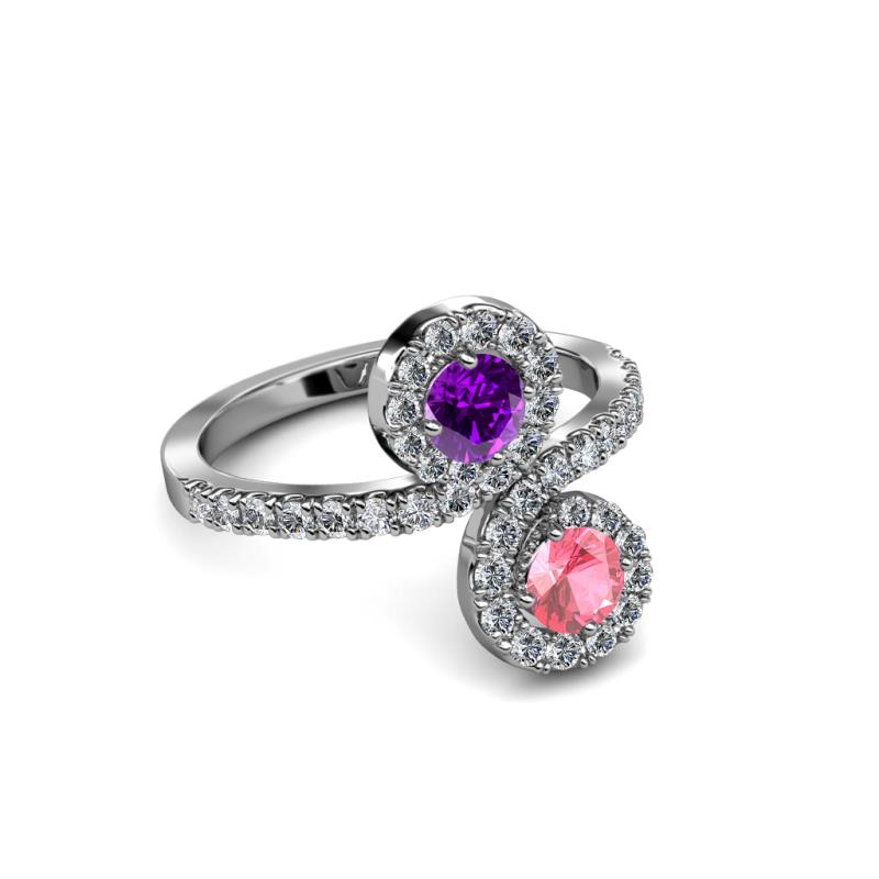 Pink Tourmaline and Amethyst 2 Stone with Side Diamonds Womens Bypass Engagement Ring 1.23 ctw 14K White Gold More Details ...