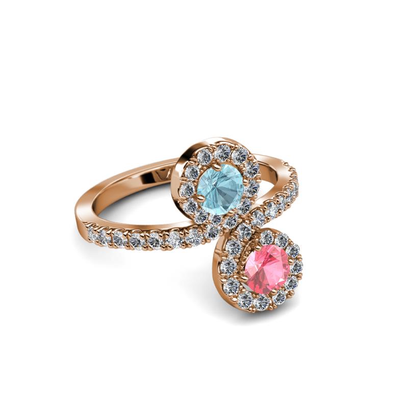 Pink Tourmaline and Aquamarine 2 Stone with Side Diamonds Womens Bypass Engagement Ring 1.23 ctw 14K Rose Gold More Details ...