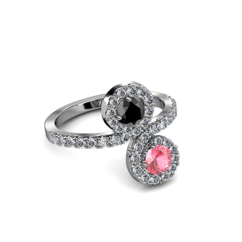Pink Tourmaline and Black Diamond 2 Stone with Side Diamonds Womens Bypass Engagement Ring 1.27 ctw 14K White Gold More Details ...