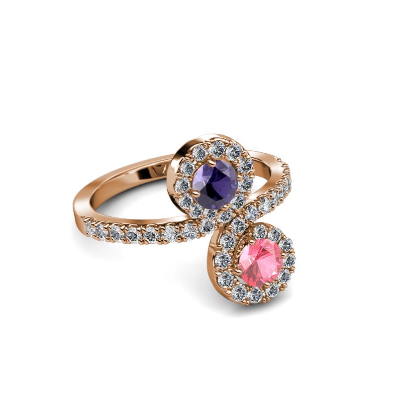 Pink Tourmaline and Iolite 2 Stone with Side Diamonds Womens Bypass Engagement Ring 1.23 ctw 14K Rose Gold More Details ...