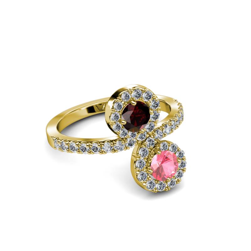 Pink Tourmaline and Red Garnet 2 Stone with Side Diamonds Womens Bypass Engagement Ring 1.26 ctw 14K Yellow Gold More Details ...