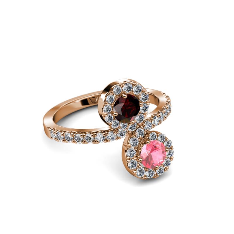 Pink Tourmaline and Red Garnet 2 Stone with Side Diamonds Womens Bypass Engagement Ring 1.26 ctw 14K Rose Gold More Details ...