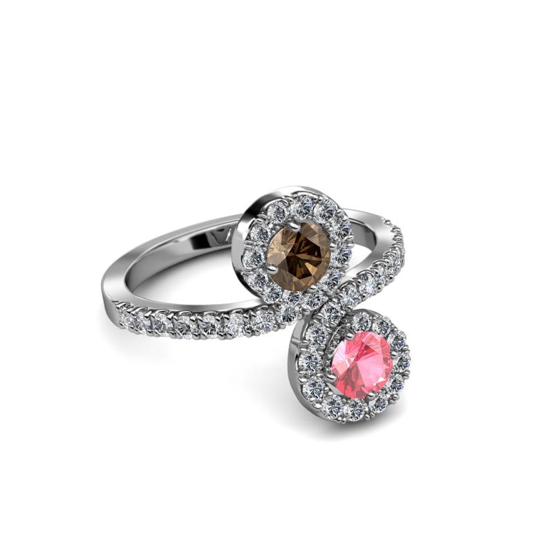 Pink Tourmaline and Smoky Quartz 2 Stone with Side Diamonds Womens Bypass Engagement Ring 1.20 ctw 14K White Gold More Details ...