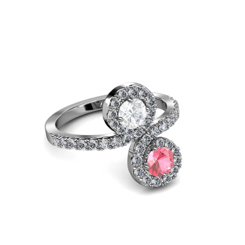 Pink Tourmaline and White Sapphire 2 Stone with Side Diamonds Womens Bypass Engagement Ring 1.23 ctw 14K White Gold More Details ...