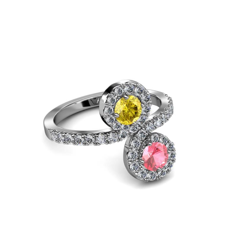 Pink Tourmaline and Yellow Sapphire 2 Stone with Side Diamonds Womens Bypass Engagement Ring 1.23 ctw 14K White Gold More Details ...