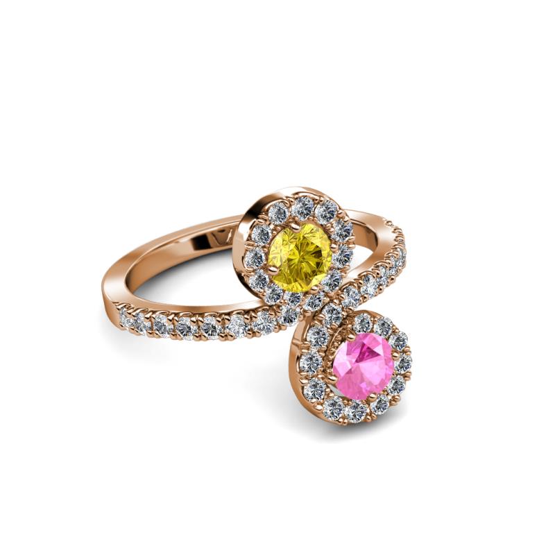 Pink and Yellow Sapphire 2 Stone with Side Diamonds Womens Bypass Engagement Ring 1.24 ctw 14K Rose Gold More Details ...
