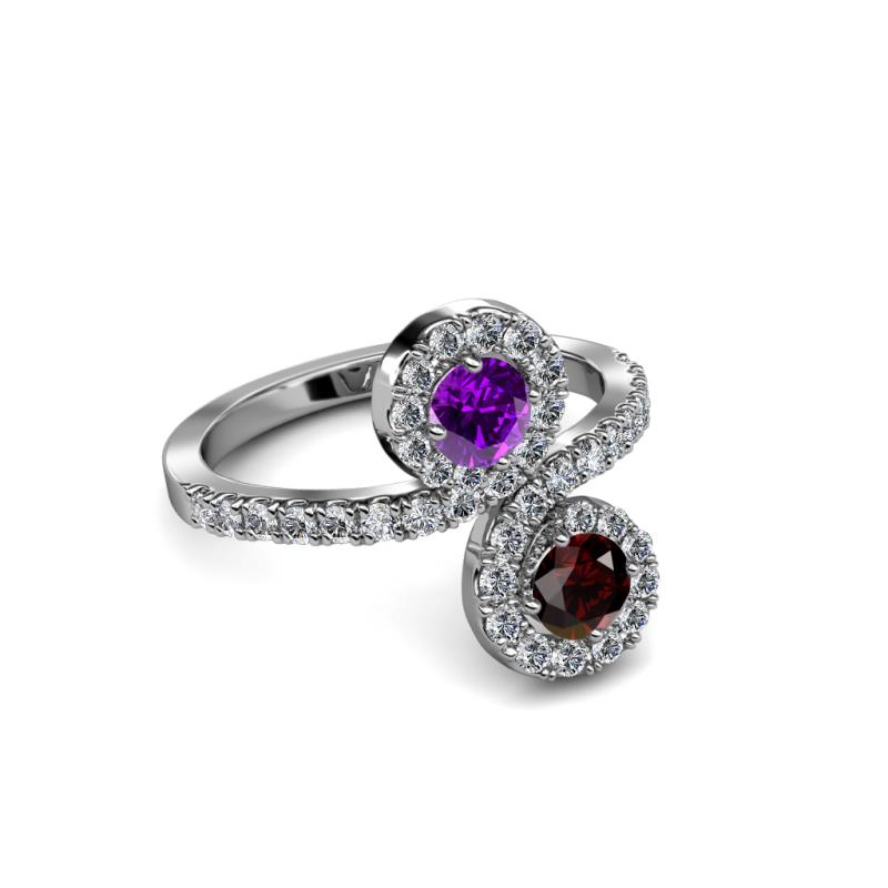 Red Garnet and Amethyst 2 Stone with Side Diamonds Womens Bypass Engagement Ring 1.26 ctw 14K White Gold More Details ...