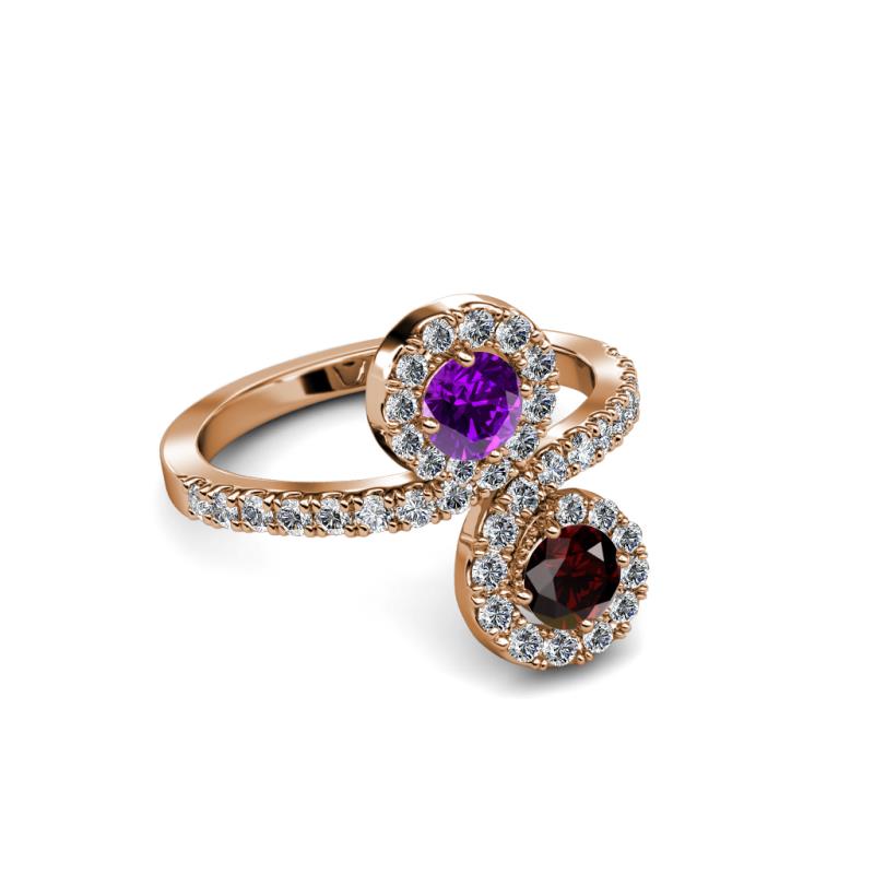 Red Garnet and Amethyst 2 Stone with Side Diamonds Womens Bypass Engagement Ring 1.26 ctw 14K Rose Gold More Details ...