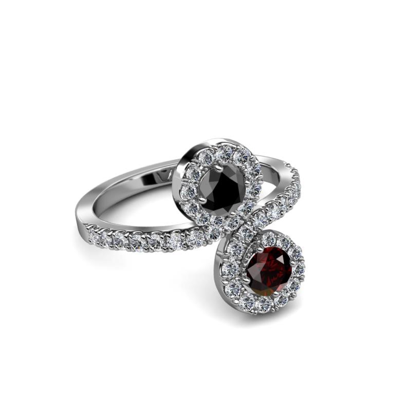 Red Garnet and Black Diamond 2 Stone with Side Diamonds Womens Bypass Engagement Ring 1.30 ctw 14K White Gold More Details ...