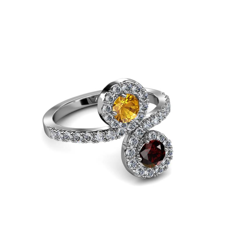 Red Garnet and Citrine 2 Stone with Side Diamonds Womens Bypass Engagement Ring 1.26 ctw 14K White Gold More Details ...