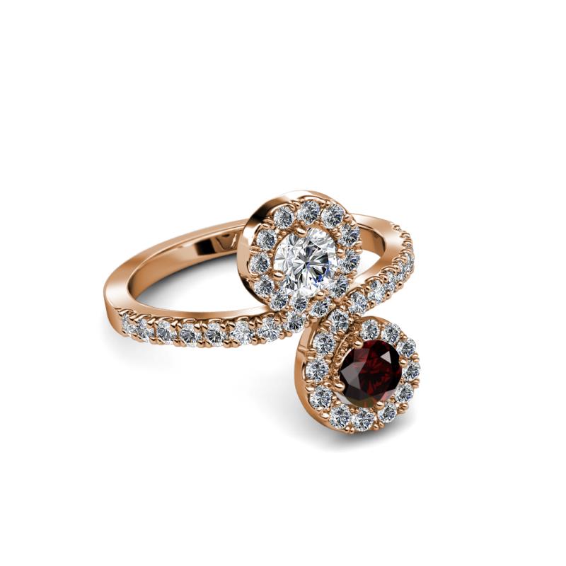 Red Garnet and Diamond 2 Stone with Side Diamonds Womens Bypass Engagement Ring 1.25 ctw 14K Rose Gold More Details ...