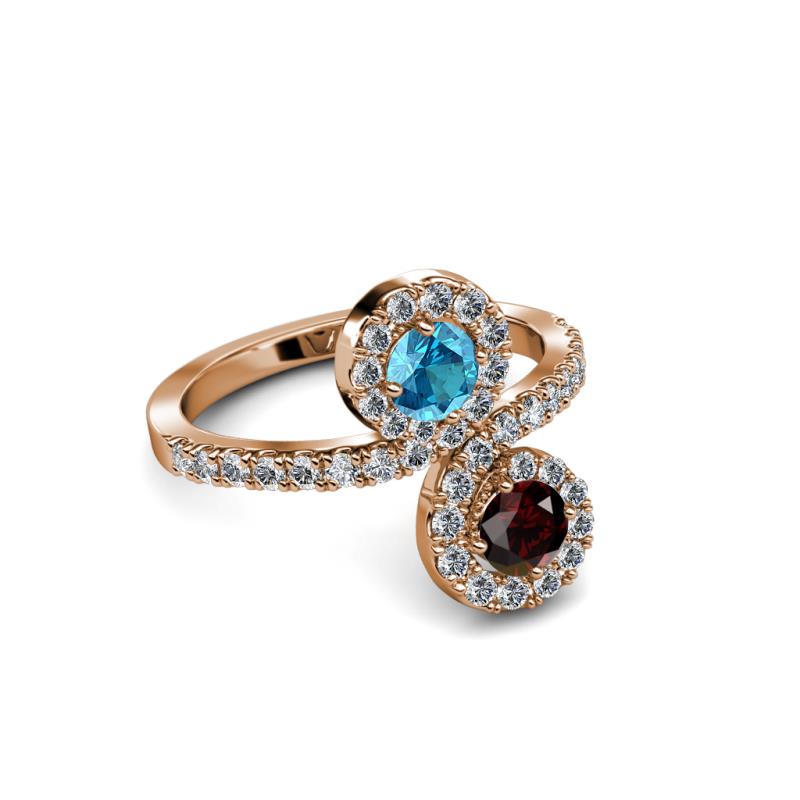 Red Garnet and London Blue Topaz 2 Stone with Side Diamonds Womens Bypass Engagement Ring 1.28 ctw 14K Rose Gold More Details ...