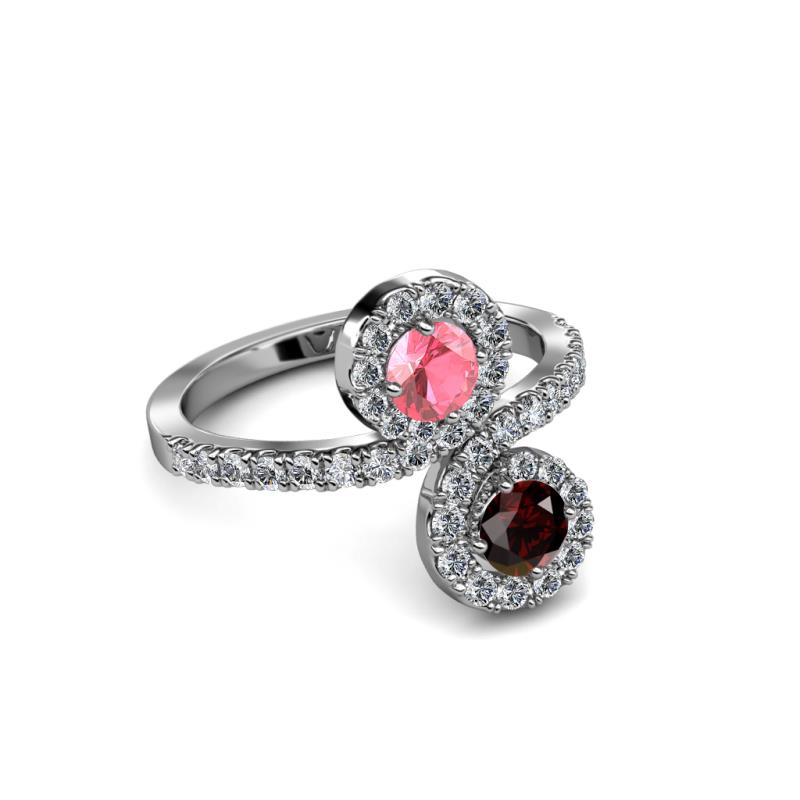 Red Garnet and Pink Tourmaline 2 Stone with Side Diamonds Womens Bypass Engagement Ring 1.26 ctw 14K White Gold More Details ...