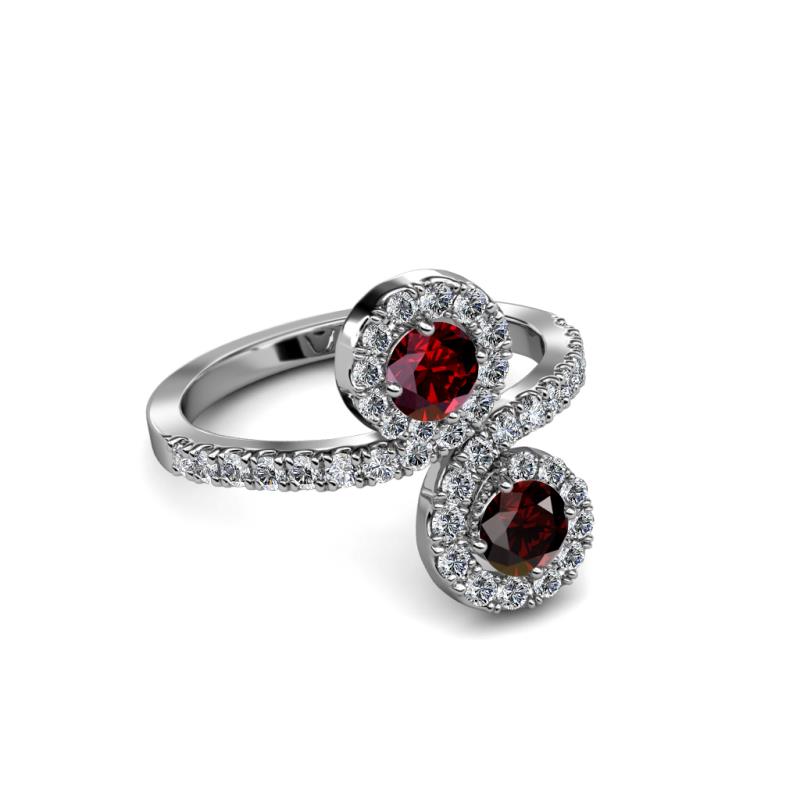 Red Garnet and Ruby 2 Stone with Side Diamonds Womens Bypass Engagement Ring 1.27 ctw 14K White Gold More Details ...