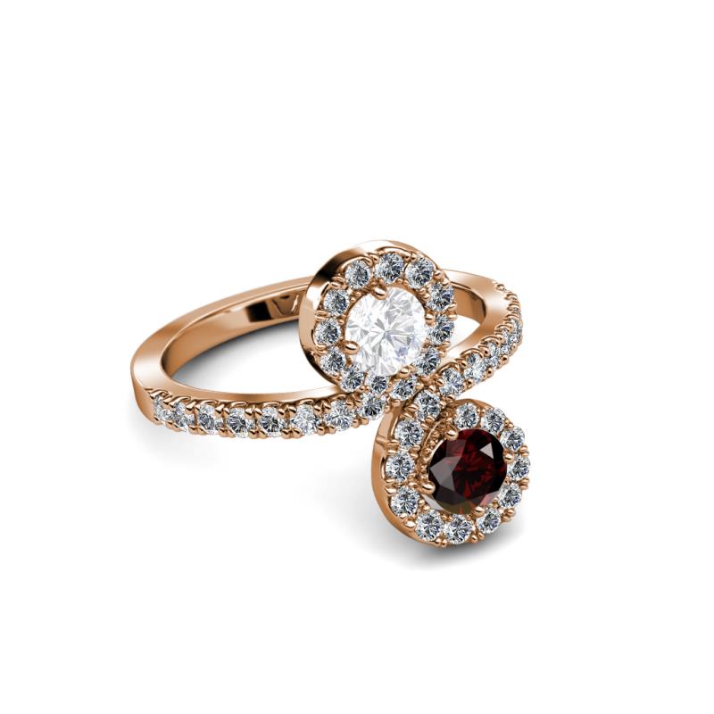 Red Garnet and White Sapphire 2 Stone with Side Diamonds Womens Bypass Engagement Ring 1.27 ctw 14K Rose Gold More Details ...
