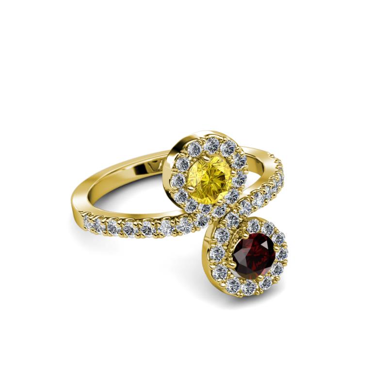 Red Garnet and Yellow Sapphire 2 Stone with Side Diamonds Womens Bypass Engagement Ring 1.27 ctw 14K Yellow Gold More Details ...