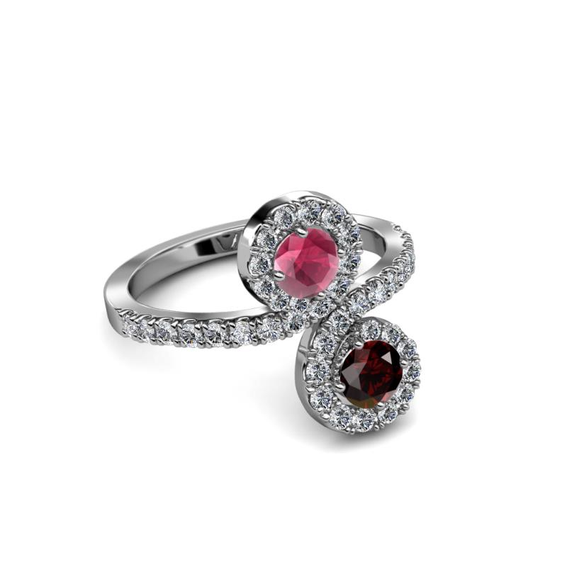 Red and Rhodolite Garnet 2 Stone with Side Diamonds Womens Bypass Engagement Ring 1.30 ctw 14K White Gold More Details ...