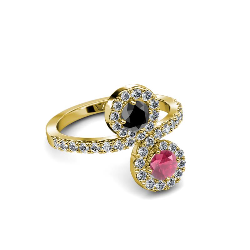 Rhodolite Garnet and Black Diamond 2 Stone with Side Diamonds Womens Bypass Engagement Ring 1.30 ctw 14K Yellow Gold More Details ...