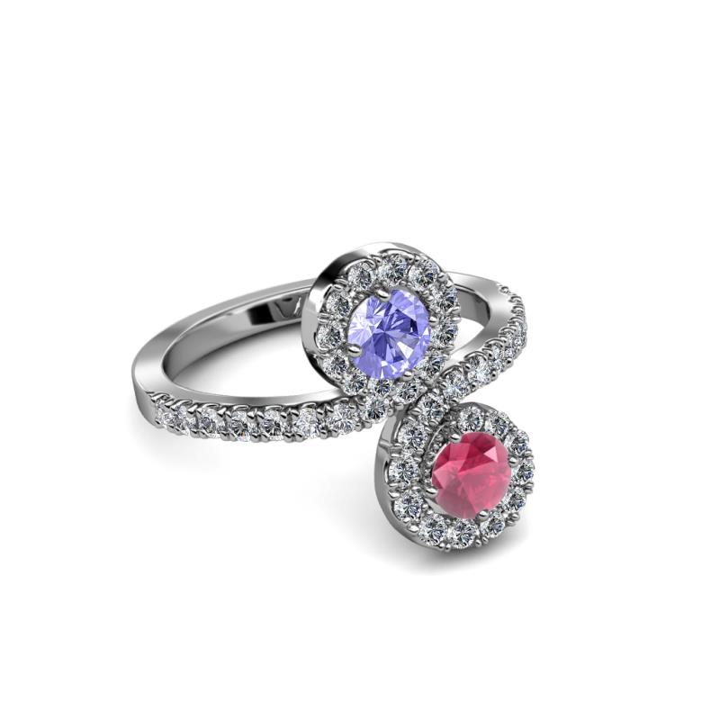 Rhodolite Garnet and Tanzanite 2 Stone with Side Diamonds Womens Bypass Engagement Ring 1.24 ctw 14K White Gold More Details ...