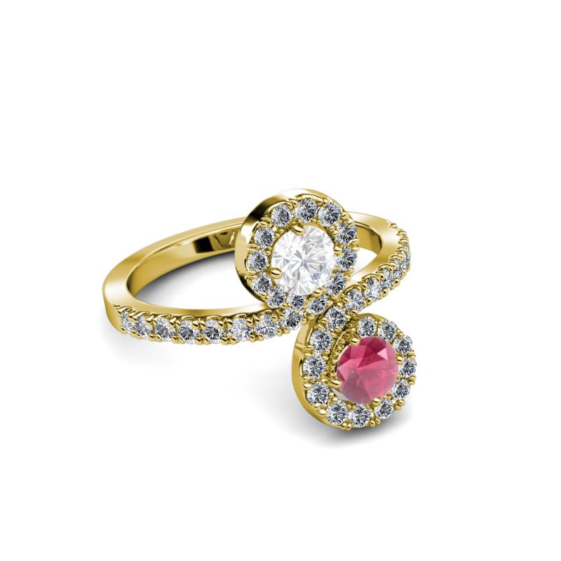 Rhodolite Garnet and White Sapphire 2 Stone with Side Diamonds Womens Bypass Engagement Ring 1.27 ctw 14K Yellow Gold More Details ...
