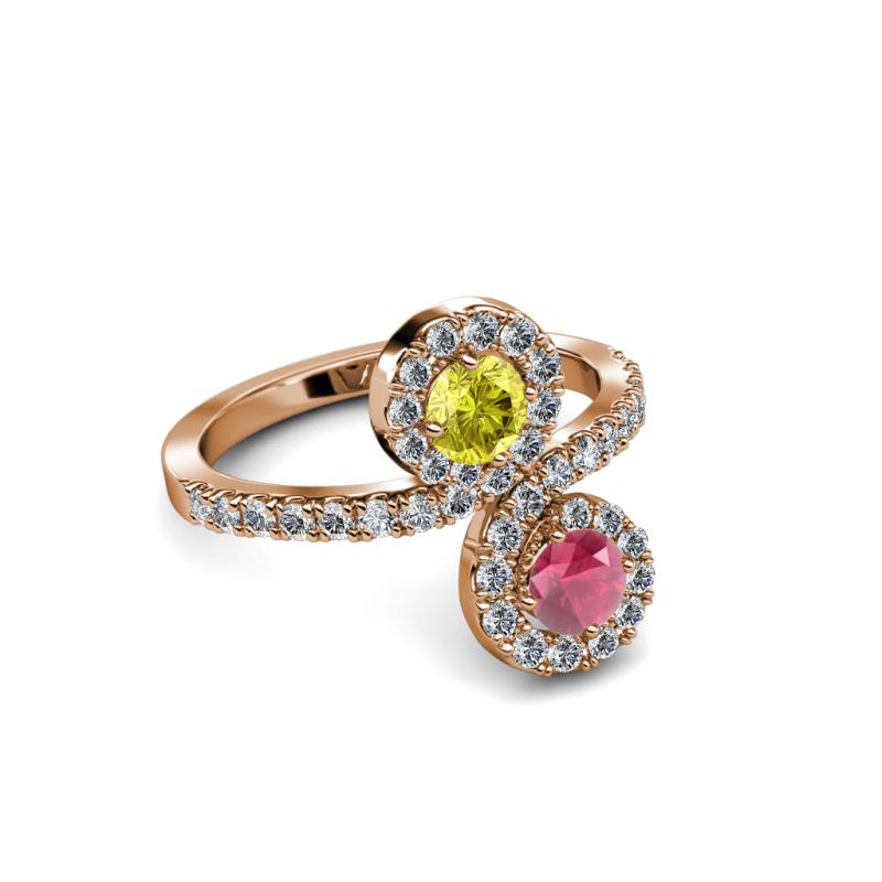 Rhodolite Garnet and Yellow Diamond 2 Stone with Side Diamonds Womens Bypass Engagement Ring 1.25 ctw 14K Rose Gold More Details ...