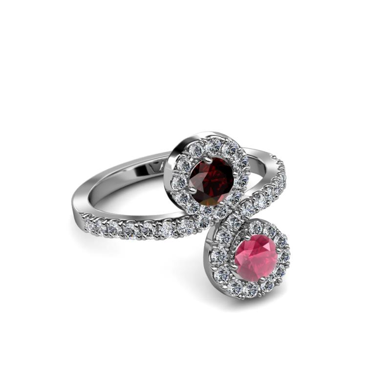 Rhodolite and Red Garnet 2 Stone with Side Diamonds Womens Bypass Engagement Ring 1.30 ctw 14K White Gold More Details ...