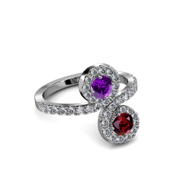 Ruby and Amethyst 2 Stone with Side Diamonds Womens Bypass Engagement Ring 1.23 ctw 14K White Gold More Details ...