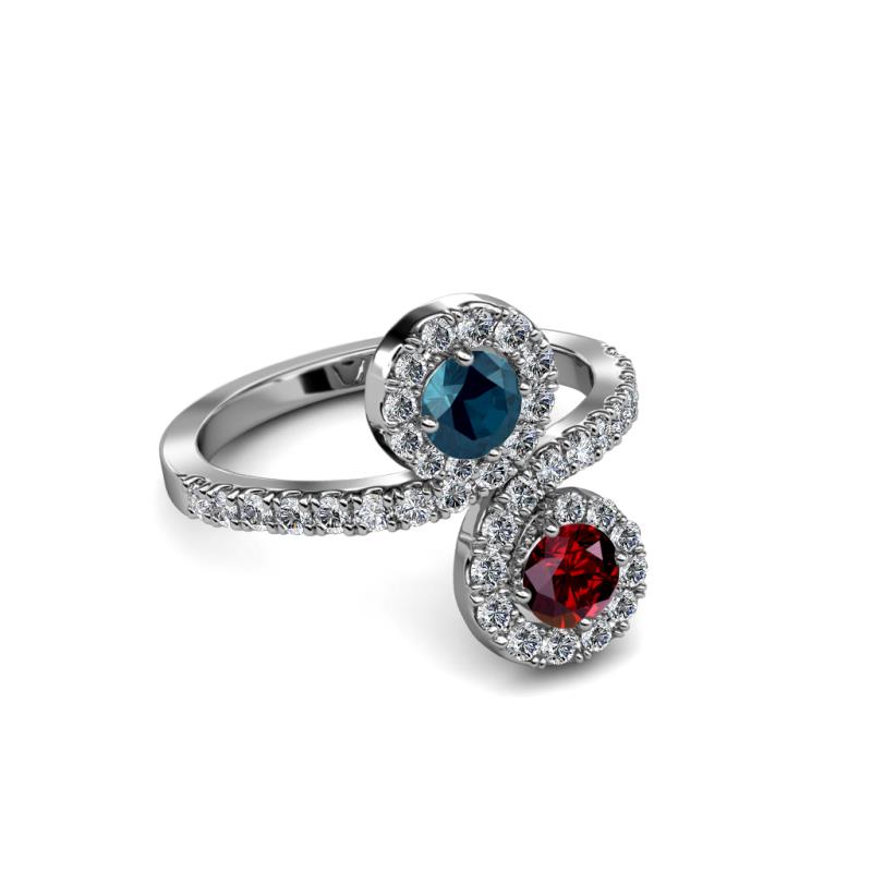 Ruby and Blue Diamond 2 Stone with Side Diamonds Womens Bypass Engagement Ring 1.22 ctw 14K White Gold More Details ...