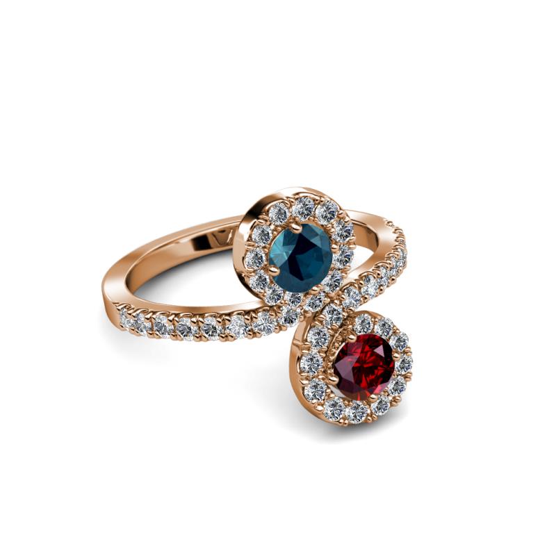 Ruby and Blue Diamond 2 Stone with Side Diamonds Womens Bypass Engagement Ring 1.22 ctw 14K Rose Gold More Details ...