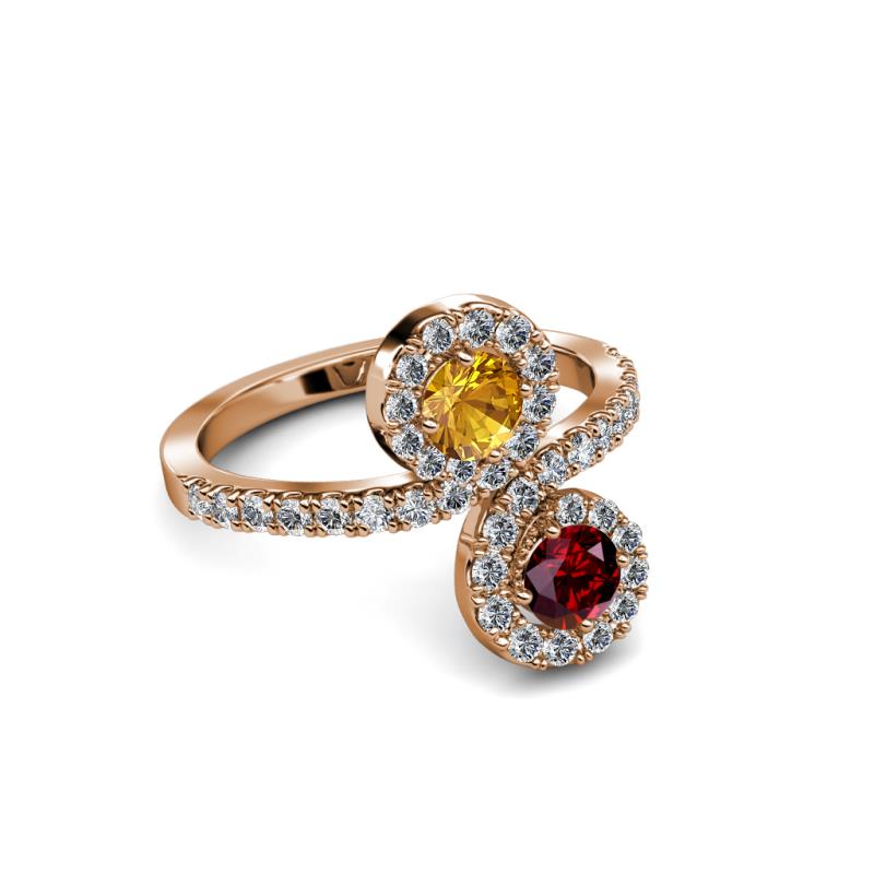 Ruby and Citrine 2 Stone with Side Diamonds Womens Bypass Engagement Ring 1.23 ctw 14K Rose Gold More Details ...