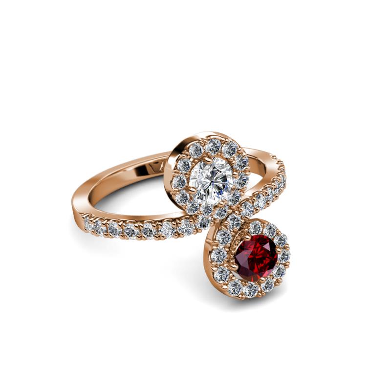 Ruby and Diamond 2 Stone with Side Diamonds Womens Bypass Engagement Ring 1.22 ctw 14K Rose Gold More Details ...