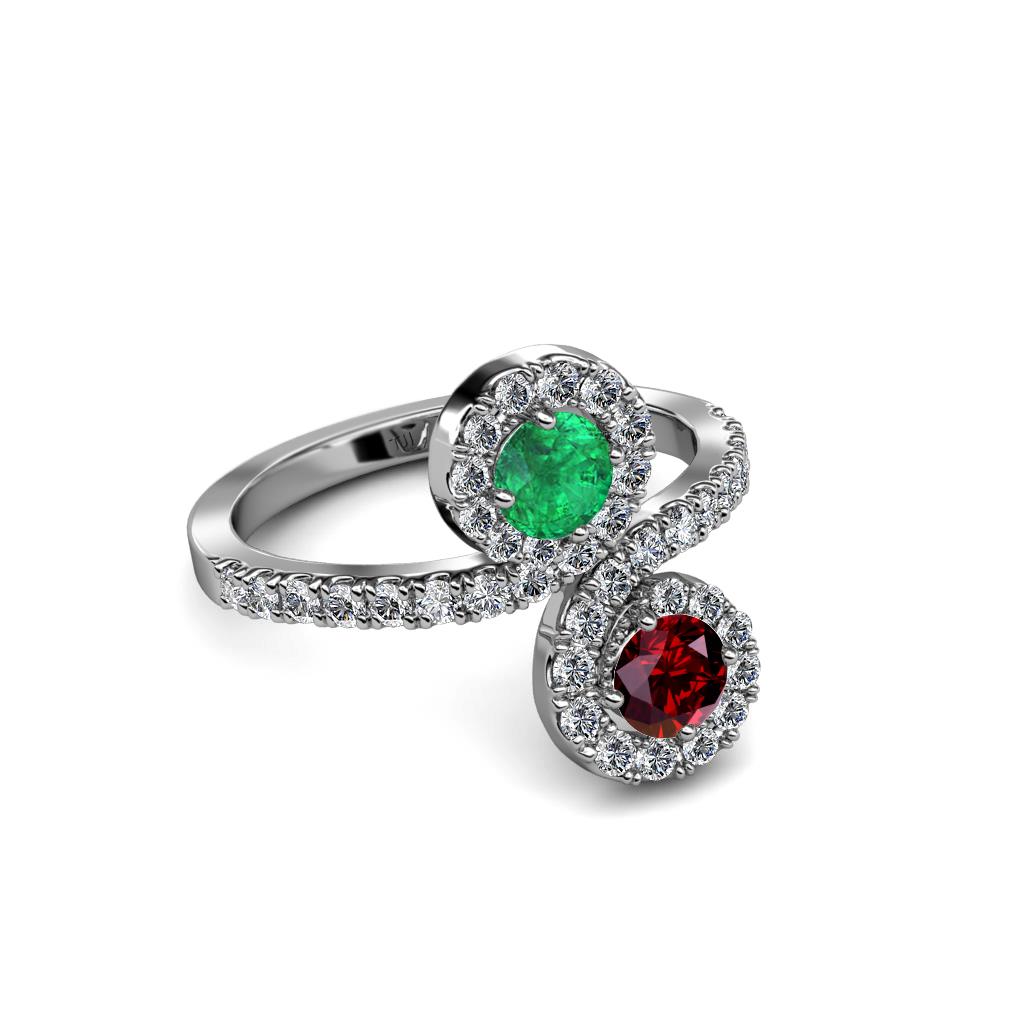 Ruby and Emerald 2 Stone with Side Diamonds Womens Bypass Engagement Ring 1.23 ctw 14K White Gold More Details ...