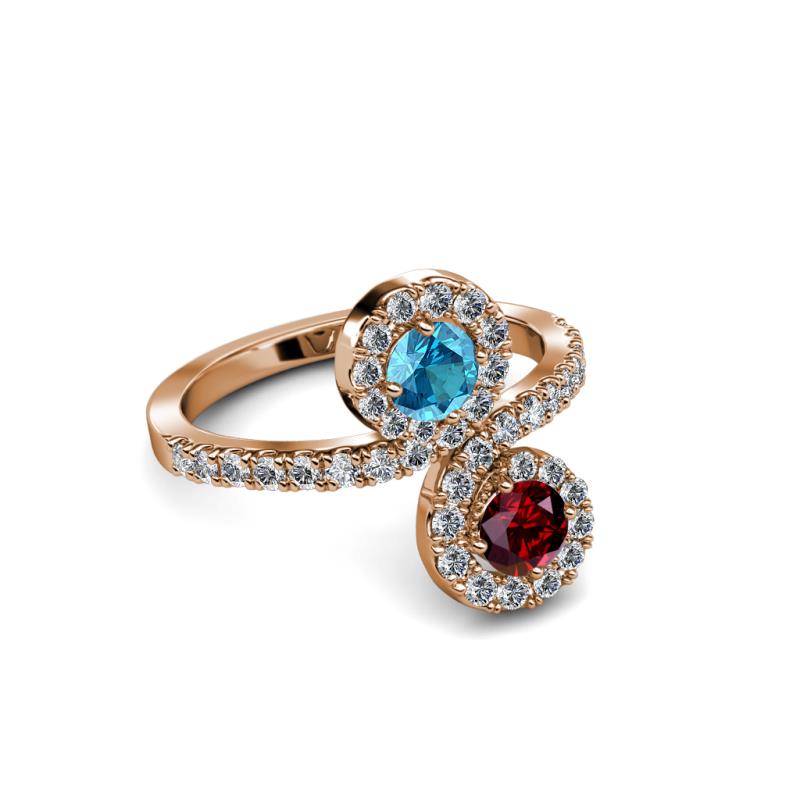 Ruby and London Blue Topaz 2 Stone with Side Diamonds Womens Bypass Engagement Ring 1.25 ctw 14K Rose Gold More Details ...
