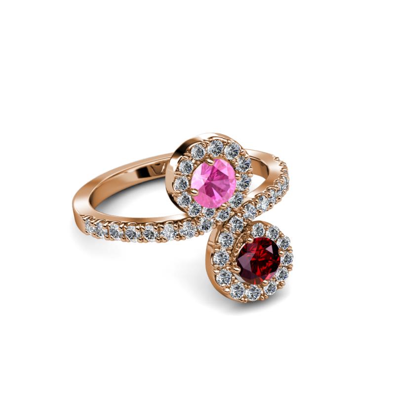 Ruby and Pink Sapphire 2 Stone with Side Diamonds Womens Bypass Engagement Ring 1.24 ctw 14K Rose Gold More Details ...