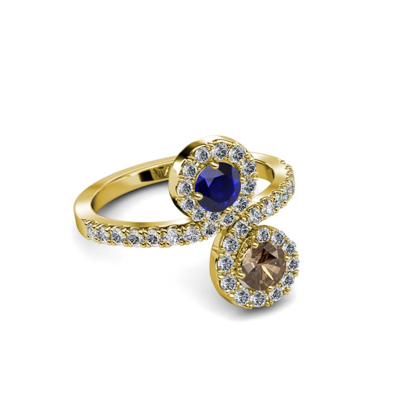 Smoky Quartz and Blue Sapphire 2 Stone with Side Diamonds Womens Bypass Engagement Ring 1.20 ctw 14K Yellow Gold More Details ...