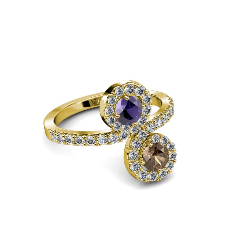 Smoky Quartz and Iolite 2 Stone with Side Diamonds Womens Bypass Engagement Ring 1.20 ctw 14K Yellow Gold More Details ...