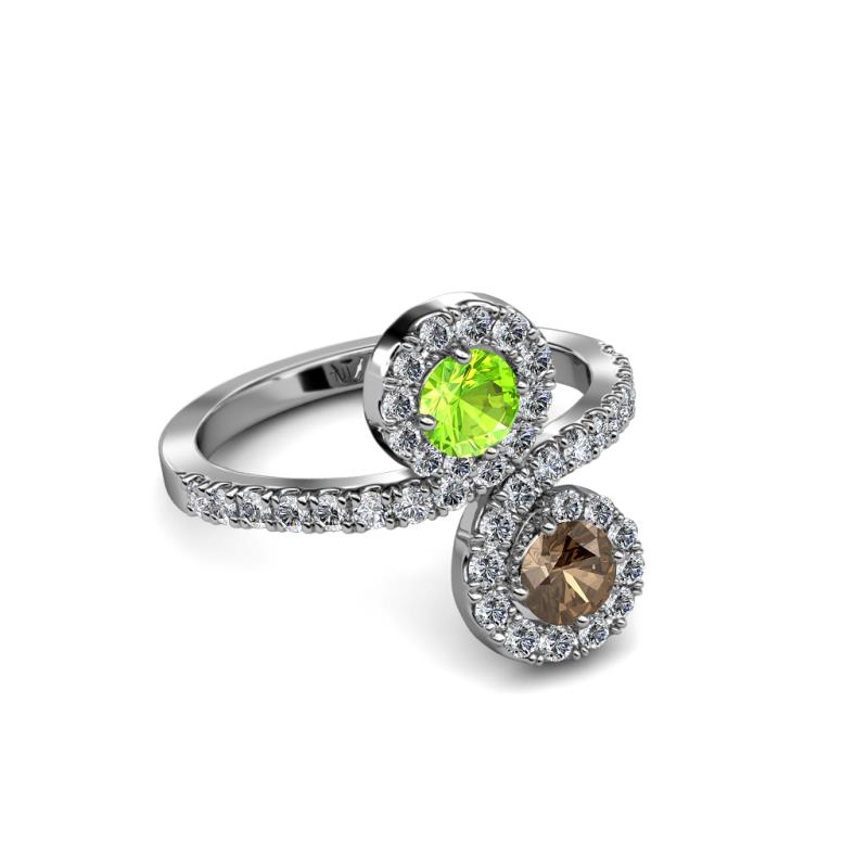 Smoky Quartz and Peridot 2 Stone with Side Diamonds Womens Bypass Engagement Ring 1.24 ctw 14K White Gold More Details ...
