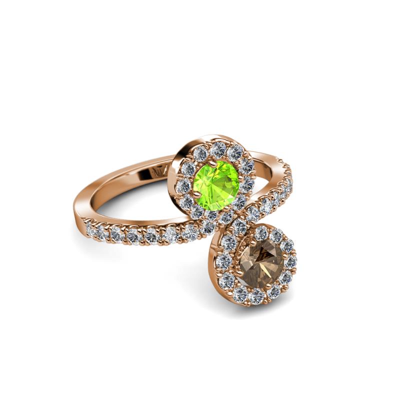 Smoky Quartz and Peridot 2 Stone with Side Diamonds Womens Bypass Engagement Ring 1.24 ctw 14K Rose Gold More Details ...