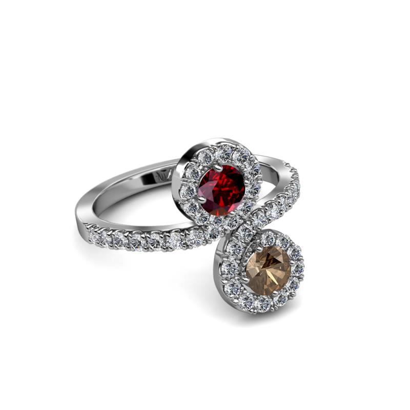 Smoky Quartz and Ruby 2 Stone with Side Diamonds Womens Bypass Engagement Ring 1.20 ctw 14K White Gold More Details ...