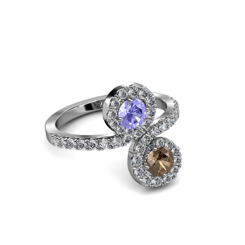 Smoky Quartz and Tanzanite 2 Stone with Side Diamonds Womens Bypass Engagement Ring 1.17 ctw 14K White Gold More Details ...