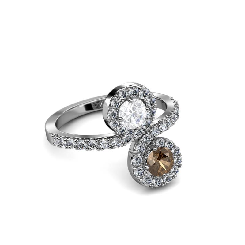 A divine symbol of togetherness, where one stone represents love and one friendship while each end of the ring swirls around the marvelous combination of Smoky Quartz & White Sapphire meeting above and below, rather than in the center.