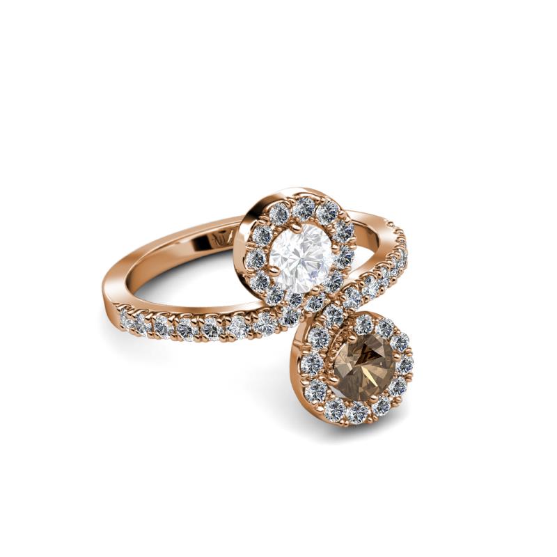 Smoky Quartz and White Sapphire 2 Stone with Side Diamonds Womens Bypass Engagement Ring 1.20 ctw 14K Rose Gold More Details ...
