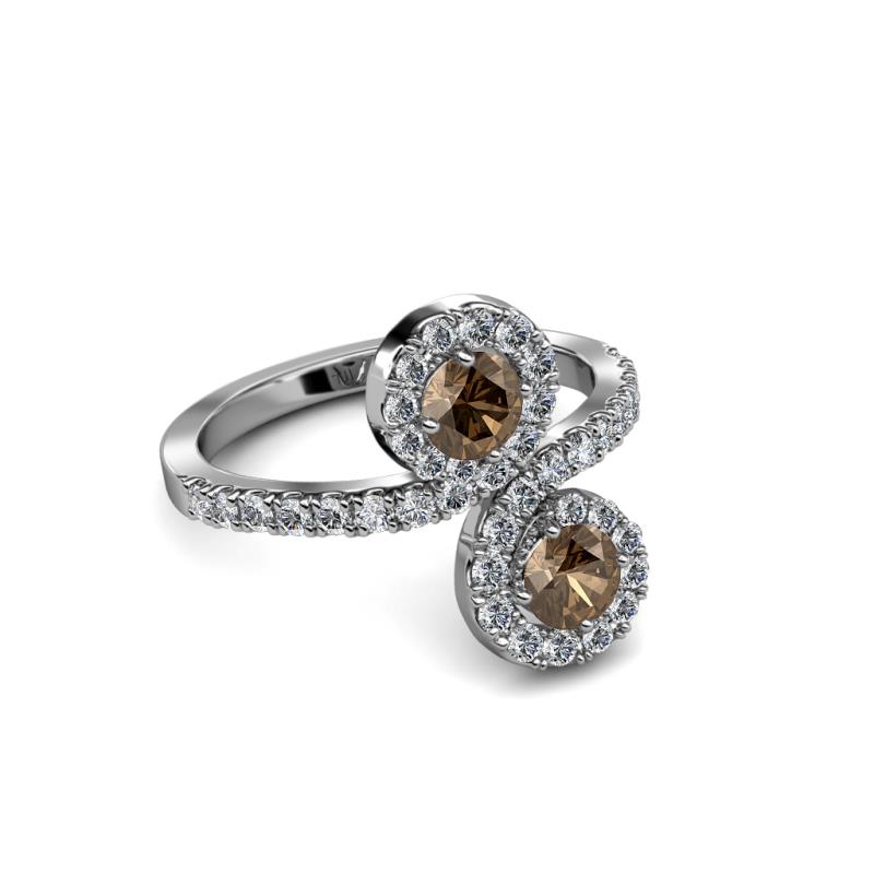 Smoky Quartz 2 Stone with Side Diamonds Womens Bypass Engagement Ring 1.17 ctw 14K White Gold More Details ...