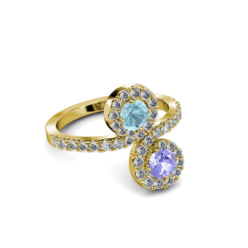 Tanzanite and Aquamarine 2 Stone with Side Diamonds Womens Bypass Engagement Ring 1.20 ctw 14K Yellow Gold More Details ...