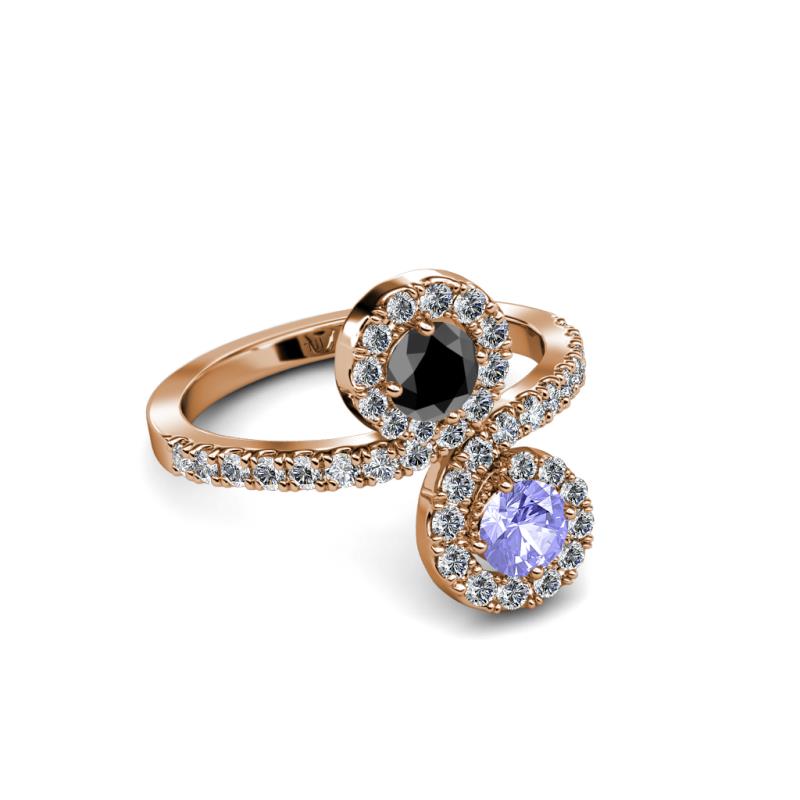Tanzanite and Black Diamond 2 Stone with Side Diamonds Womens Bypass Engagement Ring 1.24 ctw 14K Rose Gold More Details ...