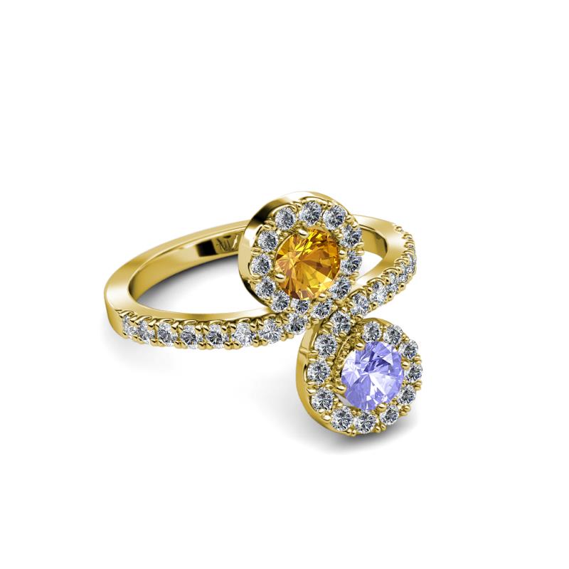 Tanzanite and Citrine 2 Stone with Side Diamonds Womens Bypass Engagement Ring 1.20 ctw 14K Yellow Gold More Details ...