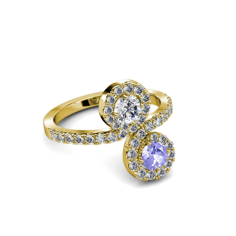 Tanzanite and Diamond 2 Stone with Side Diamonds Womens Bypass Engagement Ring 1.19 ctw 14K Yellow Gold More Details ...