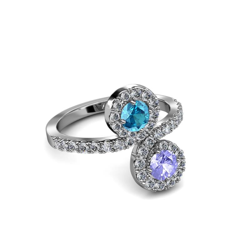 Tanzanite and London Blue Topaz 2 Stone with Side Diamonds Womens Bypass Engagement Ring 1.22 ctw 14K White Gold More Details ...