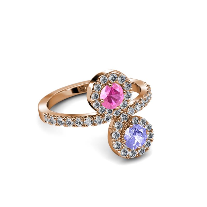 Tanzanite and Pink Sapphire 2 Stone with Side Diamonds Womens Bypass Engagement Ring 1.20 ctw 14K Rose Gold More Details ...